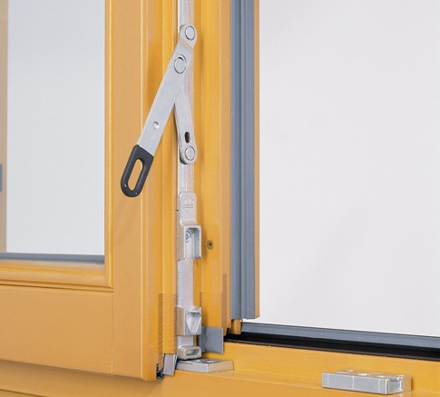 • Todos os caixilhos são fornecidos com dispositivo de segurança contra falsa manobra da ferragem e um elemento posicionador / elevador que permite maior facilidade de manuseamento.