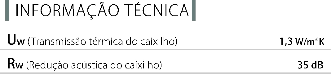 • Este tipo de montagem permite um melhor desempenho térmico e acústico dos caixilhos instalados, pois evita as transferências térmicas e acústicas entre o exterior e interior.